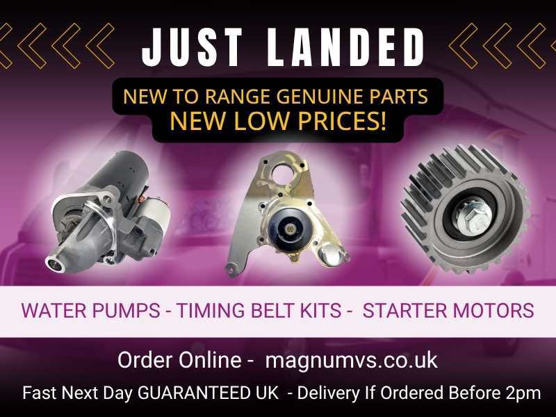 At Magnum Vehicle Solutions, we’re always adding to our ever-growing range of high-quality parts – and this time we’ve got something special for van and motorhome owners. Our latest arrivals include genuine water pumps, timing belt kits, and starter motors – all available now at fantastic low prices. Whether you’re maintaining your trusty Fiat Ducato or keeping your Iveco Daily running smoothly, these new parts are built to deliver the performance, reliability, and peace of mind you expect from genuine components.